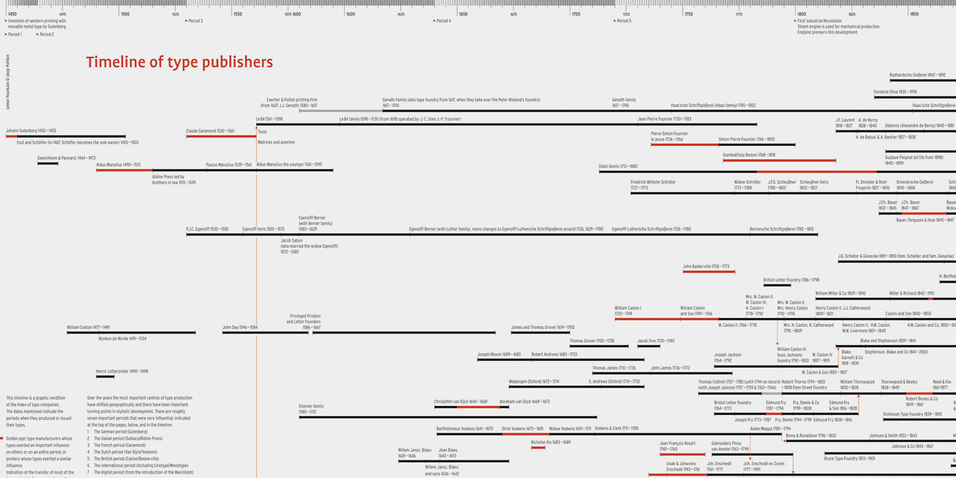 Timeline of type publishers – wykres prezentujący wydawców, którzy