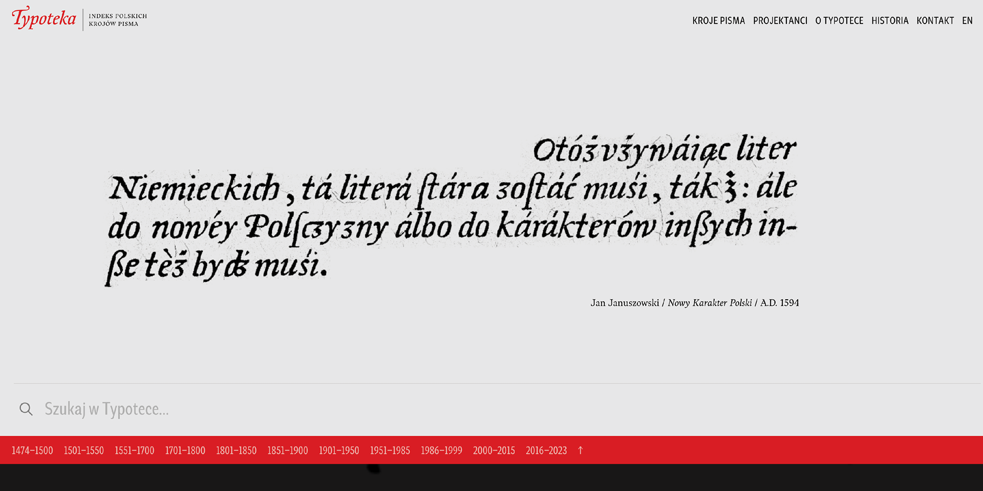 Typoteka – platforma opisująca poszczególne etapy rozwoju polskiej typografii, zawiera indeks krojów pisma stworzonych przez twórców związanych z Polską.